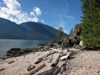 Having practiced yoga since my last visit, I look forward to the 6:30 a.m. class. Today’s extra bonus: taking the Kootenay Lake Ferry to our Pilot Point Peninsula hike.